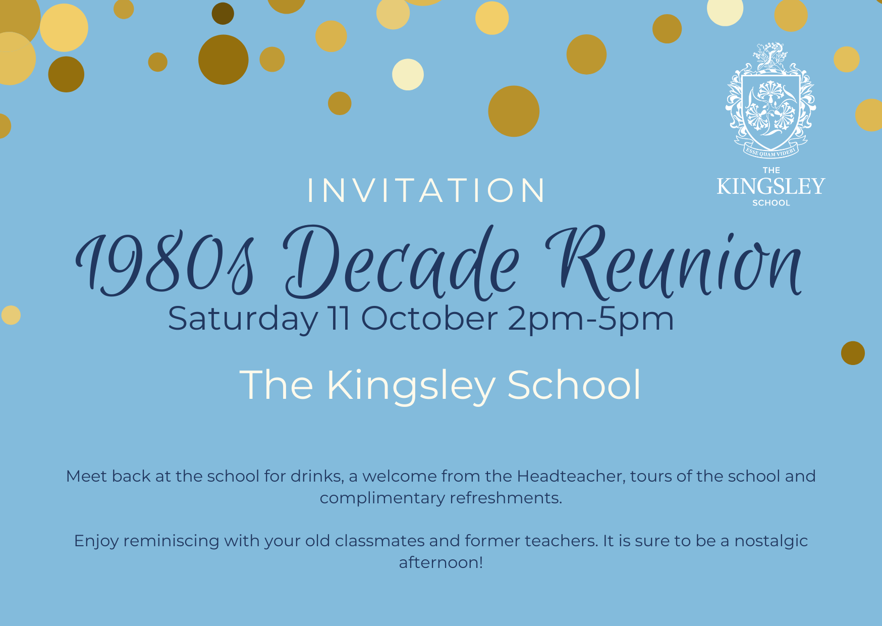 Our reunions offer a chance to gather afresh at The Kingsley School with those who were a significant part of your life in surroundings which, we believe, will be welcoming, reassuring and, yes, invigorating.