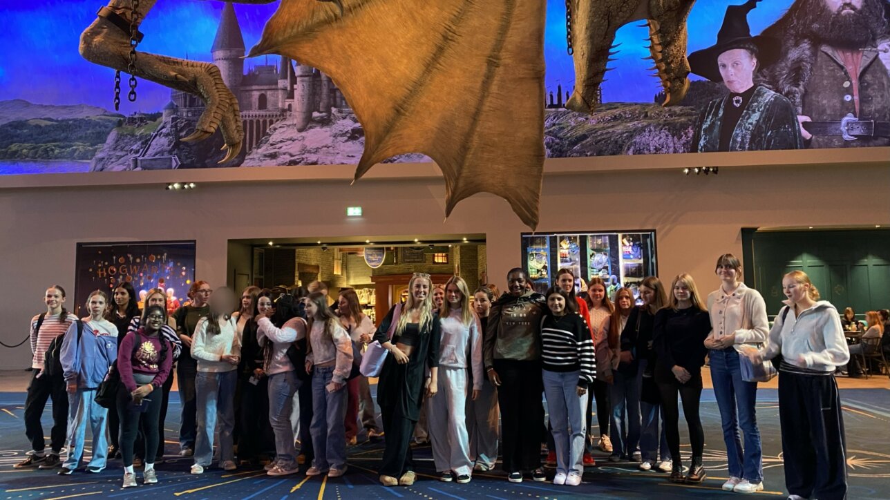 Following the workshop, students and staff embarked on the full studio tour, where they stepped into the Great Hall and were treated to a rare live performance by a troupe of Dark Arts dancers. From flying broomsticks to walking through the Forbidden Forest and boarding the Hogwarts Express on Platform 9¾, the experience brought the magic of Harry Potter to life.