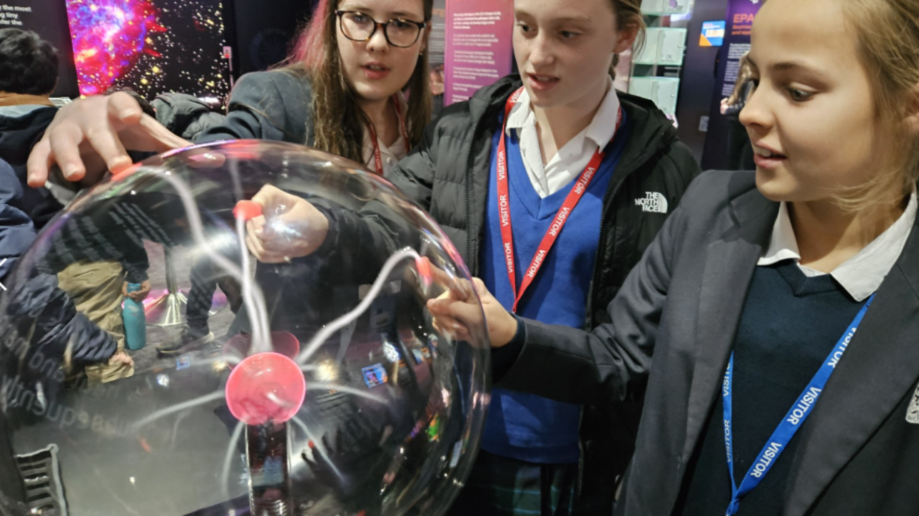 During their visit to the lab, the students enjoyed presentations from staff, including a live link to the Large Hadron Collider at CERN in Geneva, and a behind-the-scenes tour of the facilities. They also had the opportunity to meet scientists informally and explore interactive stands. Exhibits included asteroid samples, imaging techniques for fossils, and demonstrations of lasers and lenses in action, allowing the students to experience science first-hand.