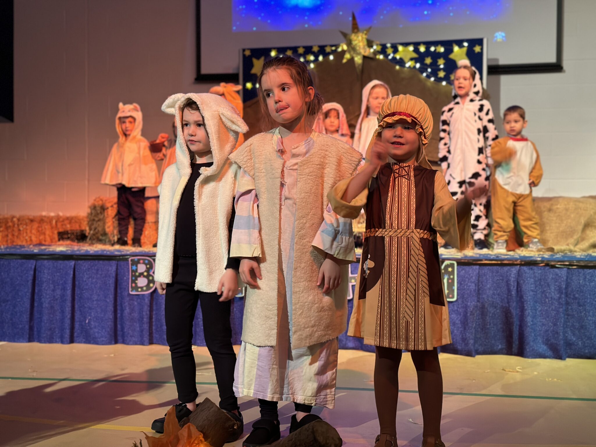 Mary and Joseph were adorable and gently led a slightly shy donkey through the proceedings, and I have to mention our soloists – the Innkeeper and his wife, and our Year 2 angel who were completely unfazed by the microphone and sang beautifully.